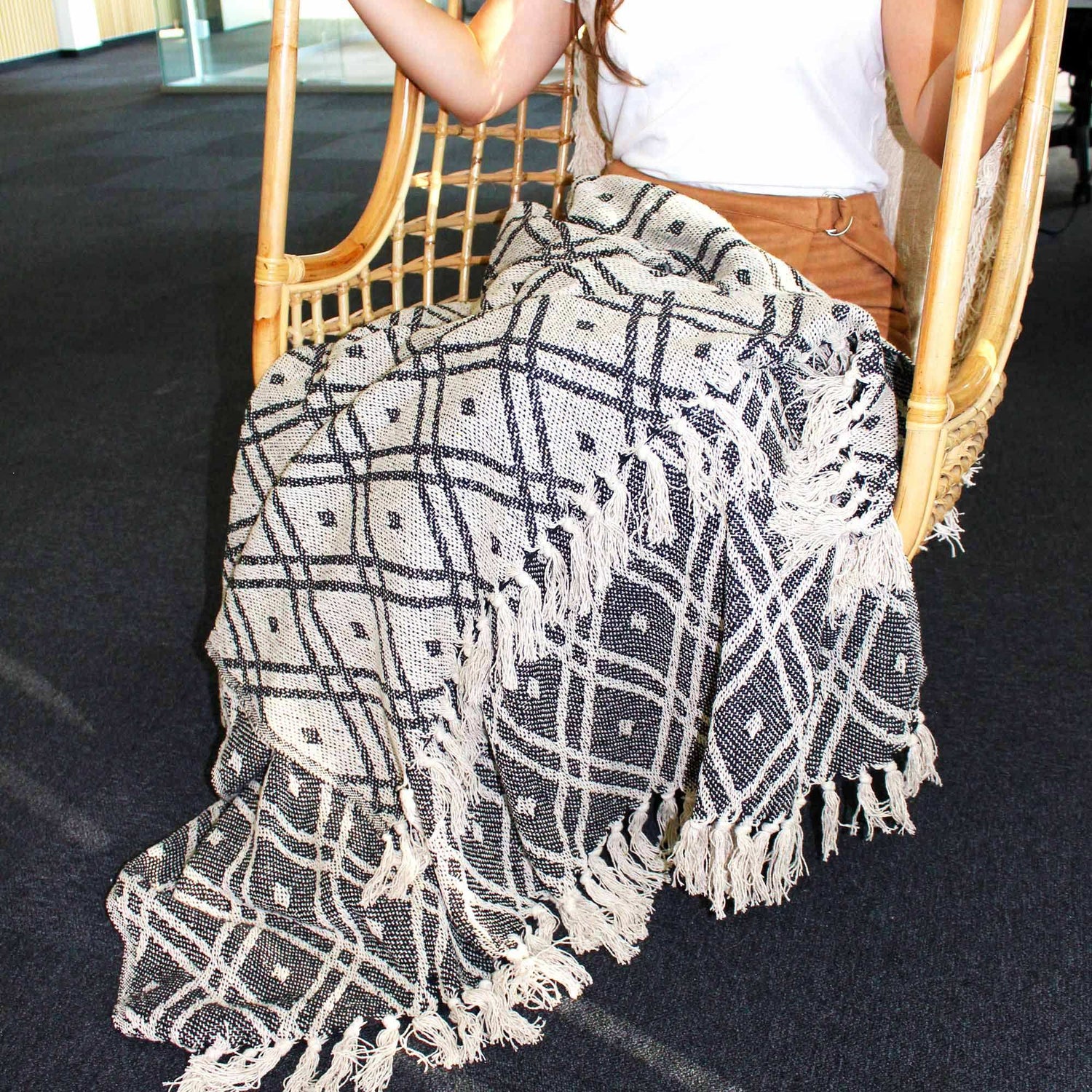 Boho Comfort Throws - 125x150cm - Black & Biege Regency