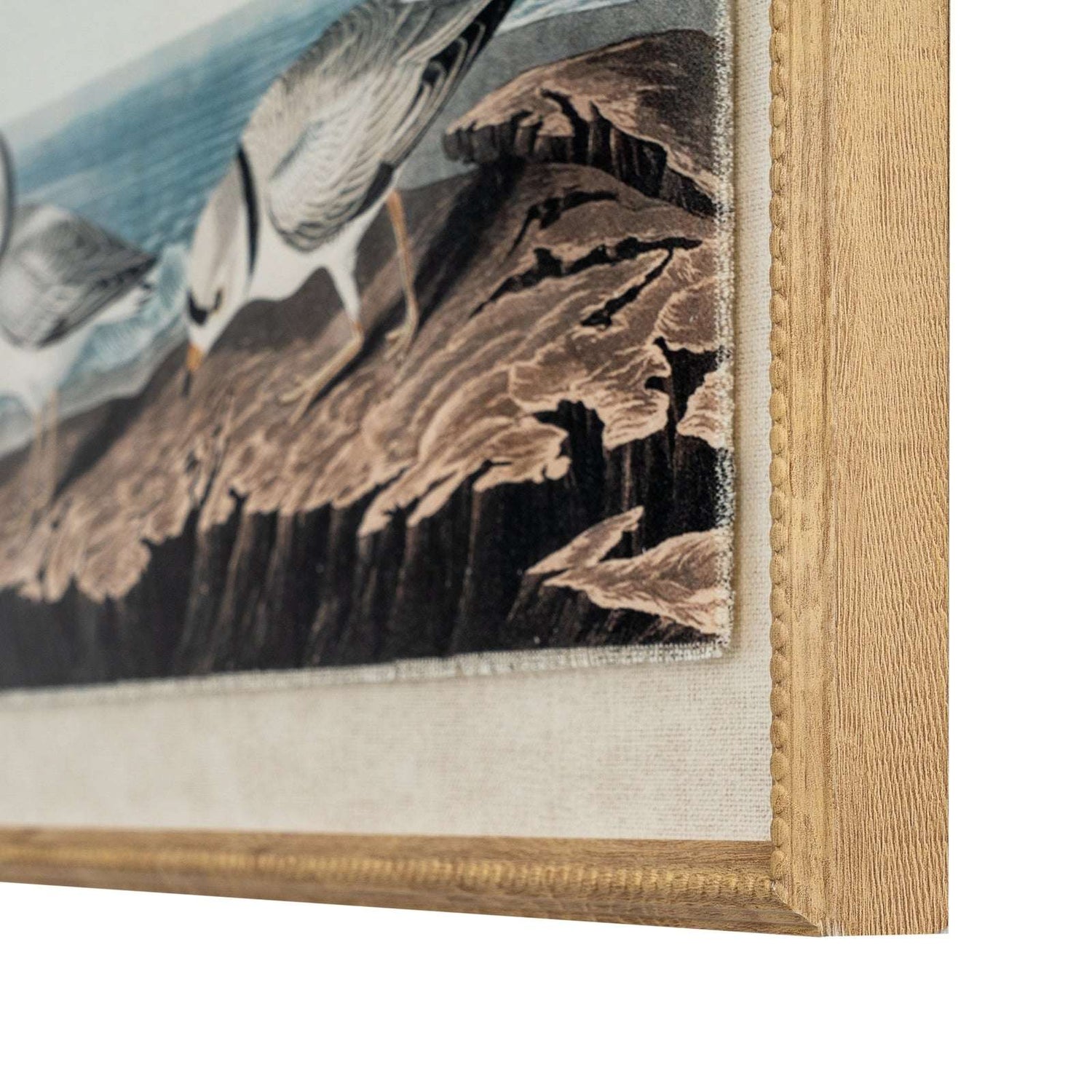 This graceful wall art presents shorebirds in a refined composition on natural linen, beautifully framed within an ornate beaded border from the distinguished Flora & Fauna Collection. The thoughtfully curated artwork delivers a harmonious balance of wildlife portraiture and understated coastal influences, making it an astute choice for discerning clientele. The muted palette and textural elements create an atmosphere of serenity, while the intricate beaded frame provides subtle luxury that appeals to the design-conscious.