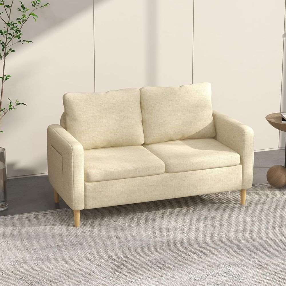 Upgrade your living space with the HOMCOM 2 Seater Sofa. This couch features a modern style that fits many decor themes. The beige fabric delivers a warm and clean look. It suits living rooms, offices, and guest rooms well.