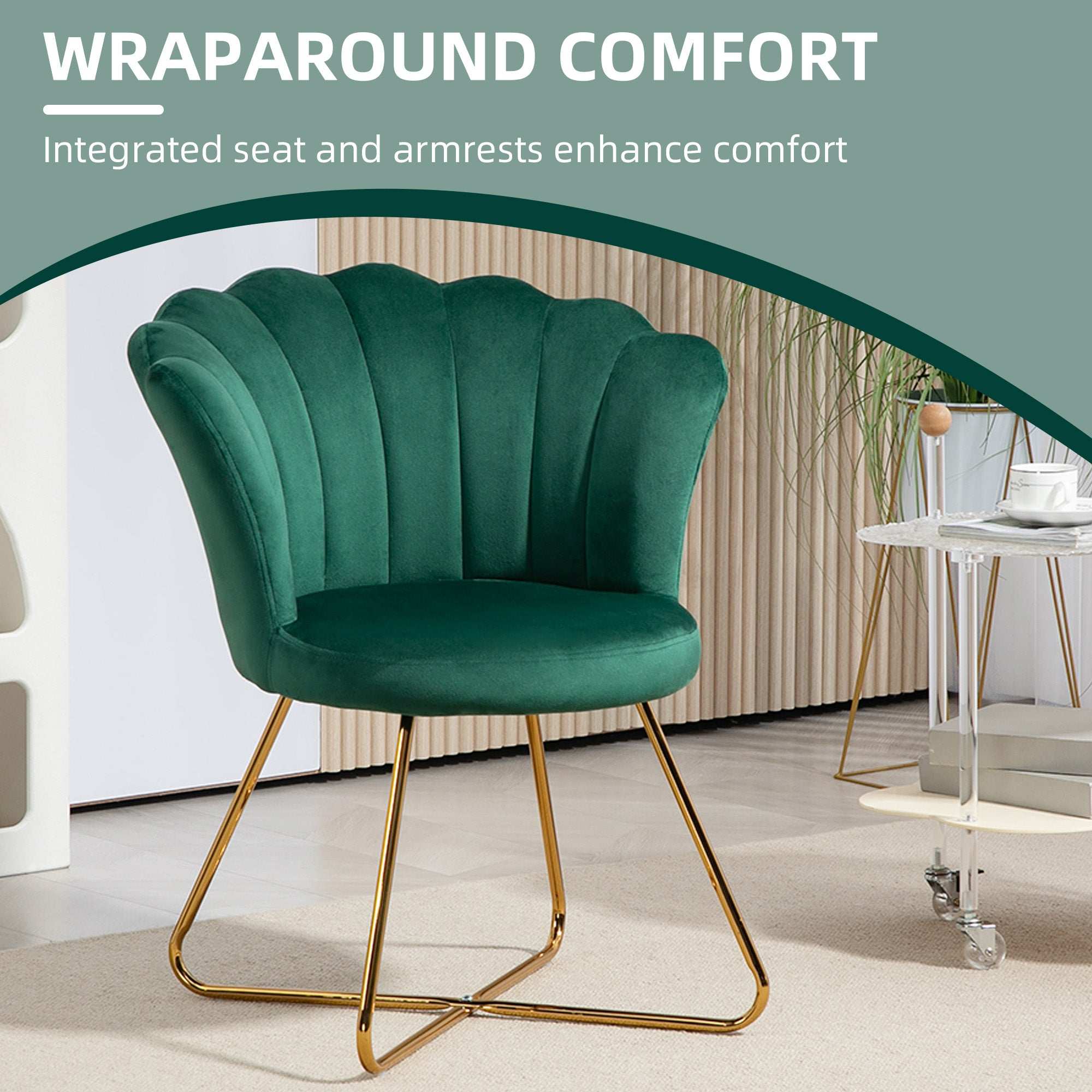 Add charm to any room with the HOMCOM Accent Chair. This accent chair features a soft velvet fabric in rich green. The lotus backrest design creates a unique style and helps the chair stand out. It supports your back and lets you sit comfortably for long periods.