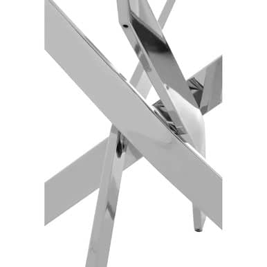 Orsina distils modern clarity with the Allure Rectangular Intersected Base Dining Table. The Chrome Dining Table sets a rectangular clear glass top over four intersecting chrome-finished legs that create an elegant crossing beneath the surface.