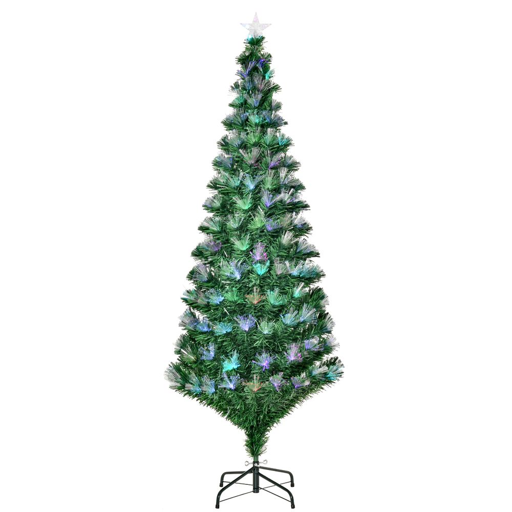 Features 230 LED fibre optic lights in red, green, yellow and blue for a dazzling display - Pre-set light patterns to mix up the flashing easily - Star topper attached to fix your own angel, star or other type of tree topping - Metal base keeps the tree weight and in place - Beautiful full-bodied design in a 6 ft height to stand proud in your home or office - Branches are able to support your own decorations and tinsel - Easy to assemble