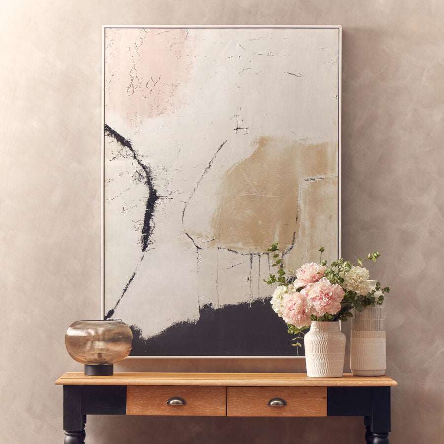 Create a calm yet refined focal point with the Astratto Natural Pink and Classic Wall Art. An abstract scene unfolds across textured canvas in black, white, pink, and natural tones for a balanced, contemporary look.