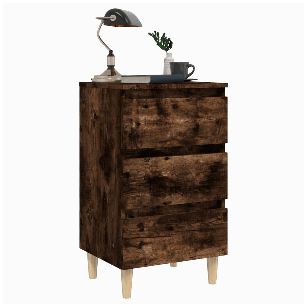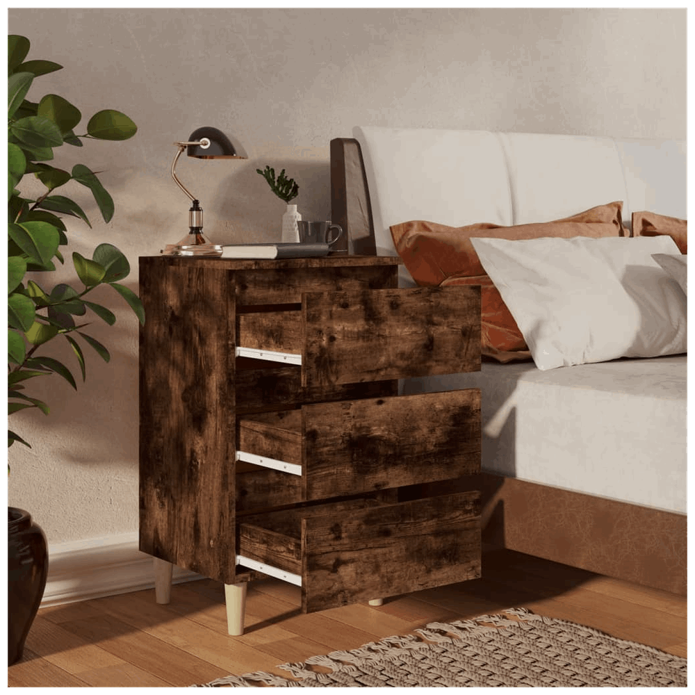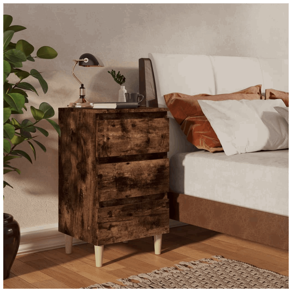 Upgrade your resting area with a product that mixes practicality with style. vidaXL brings you quality and comfort. The solid wood legs and smoked oak finish will enhance your home. Select the bed cabinet to complete your bedroom look.