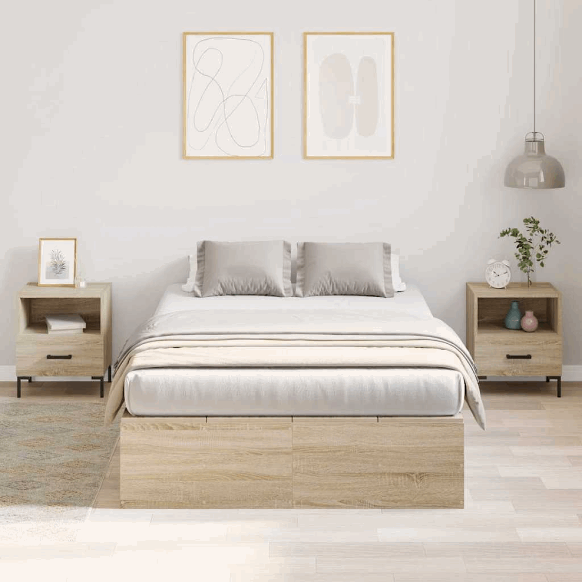 Elevate your bedroom decor with the vidaXL Bed Frame, crafted from durable engineered wood and finished in a stunning Sonoma oak. Sized at 200 x 120 x 31.5 cm, this bed frame offers both style and practicality, making it an ideal centerpiece for any modern bedroom.