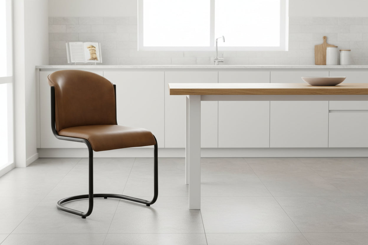 Sink into sophisticated comfort with the Billy Leather Curved Dining Chair. Its gracefully contoured backrest cradles your spine, transforming everyday meals into moments of relaxation. Premium leather upholstery ages beautifully, developing character while resisting wear—making this chair an investment that looks better with time. The curved silhouette adds contemporary elegance to any dining space, while sturdy construction ensures stability through years of gatherings. Whether hosting dinner parties or enjoying quiet breakfasts, the Billy delivers the perfect blend of style and support that elevates your dining experience.