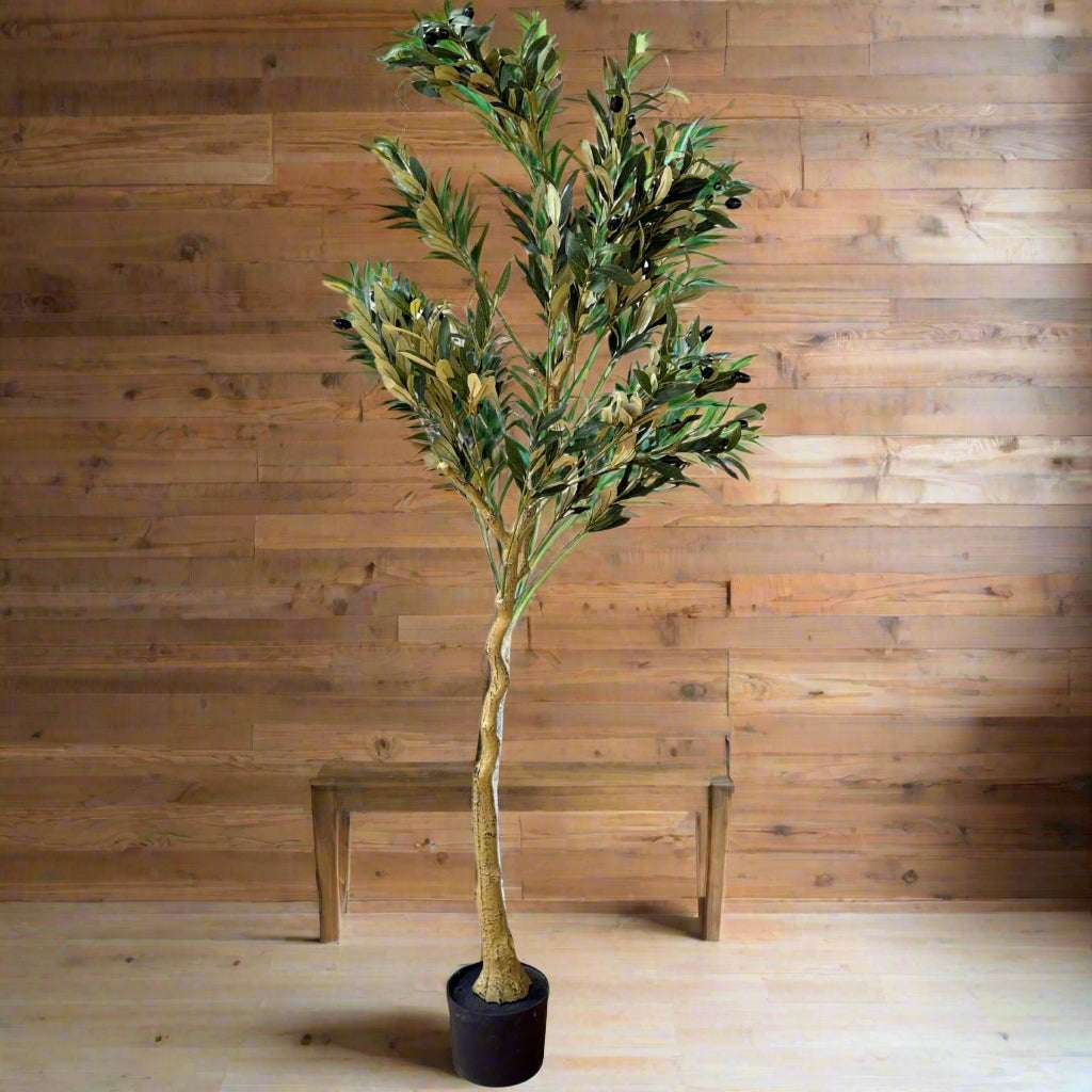 Bring the Mediterranean ambiance indoors with this meticulously detailed artificial olive tree. Every aspect has been thoughtfully crafted, from its textured trunk to its lifelike foliage and realistic fruit, ensuring authentic appeal throughout the seasons. Perfect for creating focal points in hospitality spaces or retail environments, this intermediate-sized tree offers the ideal balance of presence and proportion.