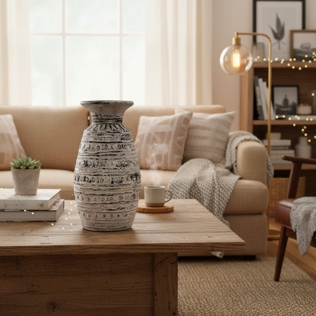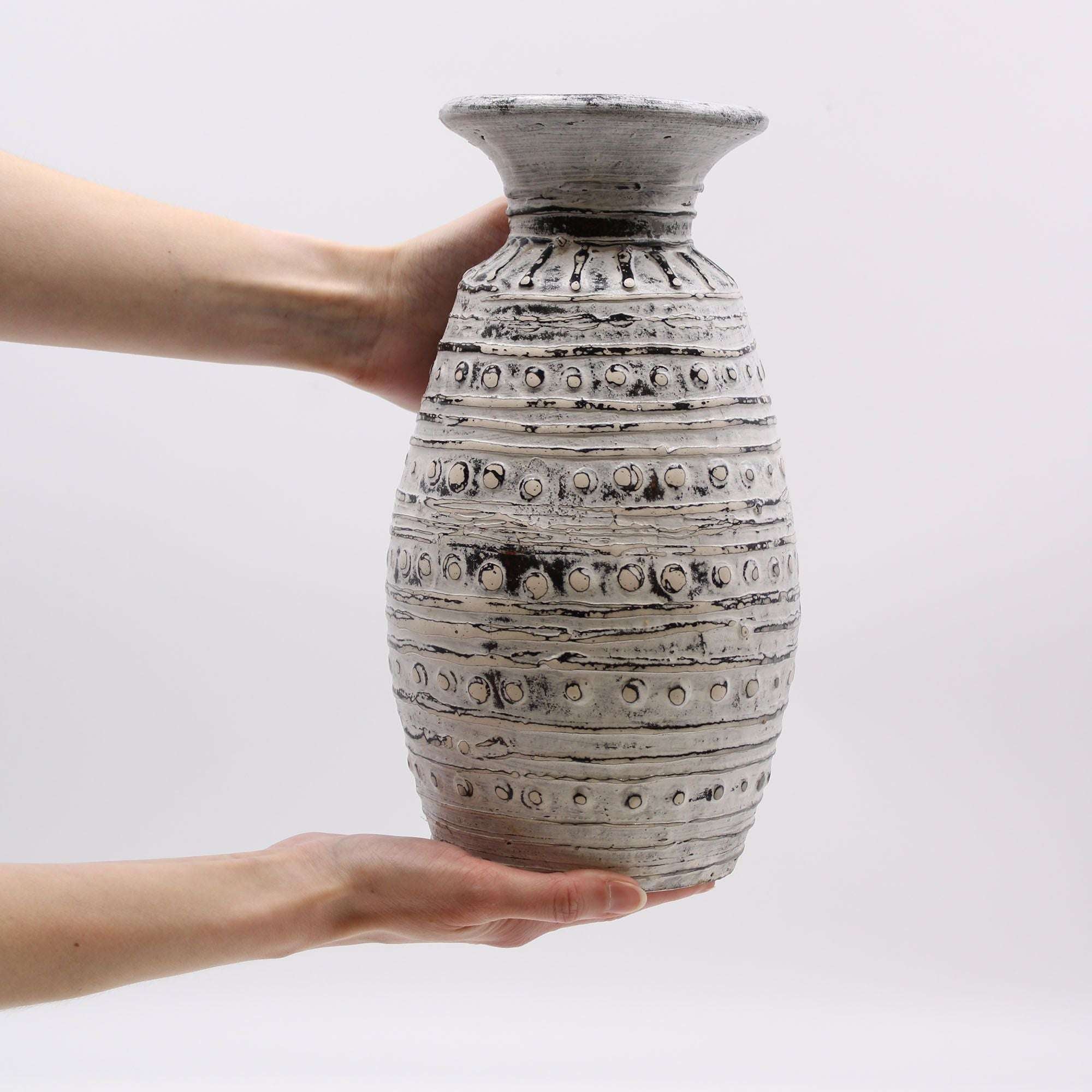 Measuring a suitable height, this vase fits comfortably on your dining table, mantelpiece, or side table. Each vase is unique, giving you a one-of-a-kind decor item. The creamy finish can match various color palettes, ensuring it complements your existing furnishings seamlessly.