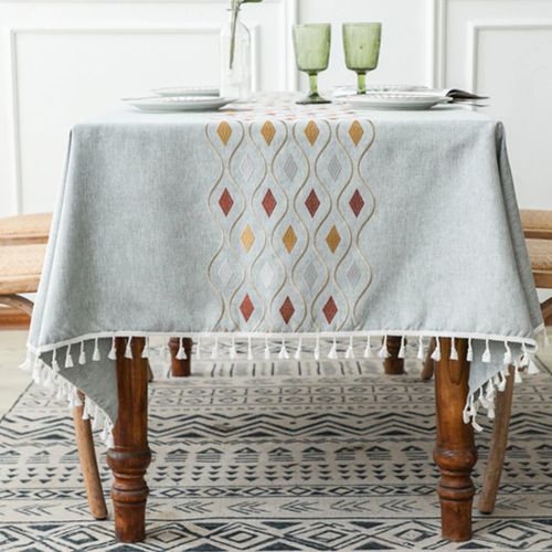 Enhance your dining experience with our beautiful cotton linen tablecloth, featuring elegant embroidery and fringed edges. Not only does it provide a stylish decor element, but it also serves as a protective cover for your table, making every meal a delightful occasion.