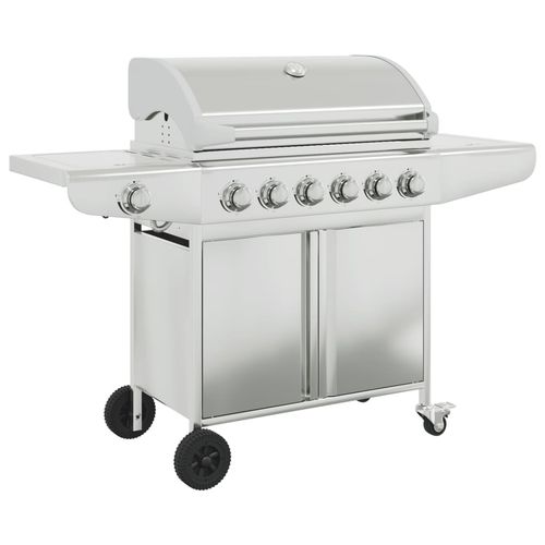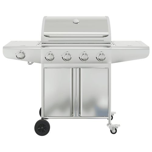 Enjoy cooking outdoors with the vidaXL Gas BBQ Grill. This grill has 4 burners. You get even heat for your food every time. The gas BBQ grill is made from silver stainless steel. This material is strong and easy to clean. Use it for family dinners or weekend parties with friends.
