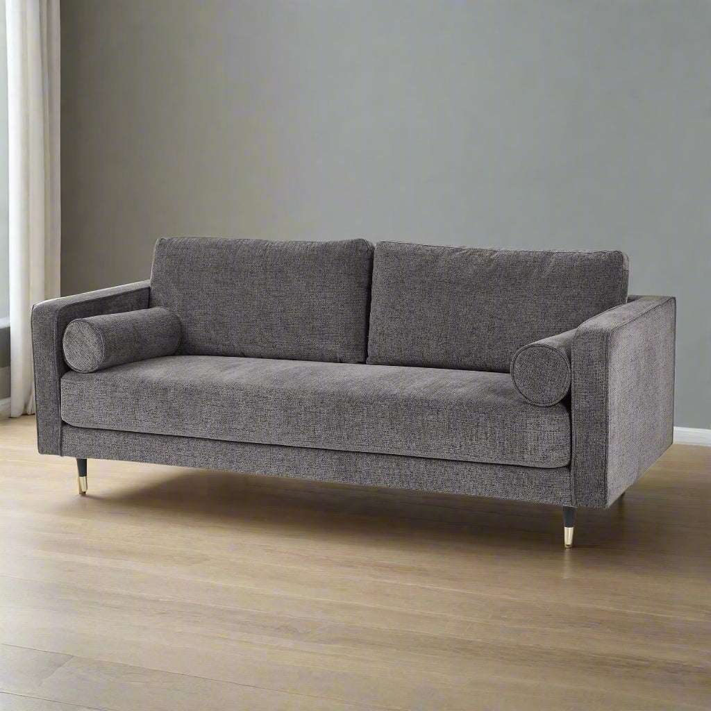 Drawing inspiration from classic British design sensibilities, this grey upholstered sofa merges traditional comfort with contemporary style. The generous proportions and plush cushioning create an inviting atmosphere in any living space, while the neutral grey tone provides endless decorative possibilities. The clean lines and subtle detailing make it an excellent centerpiece for both modern and traditional interiors.