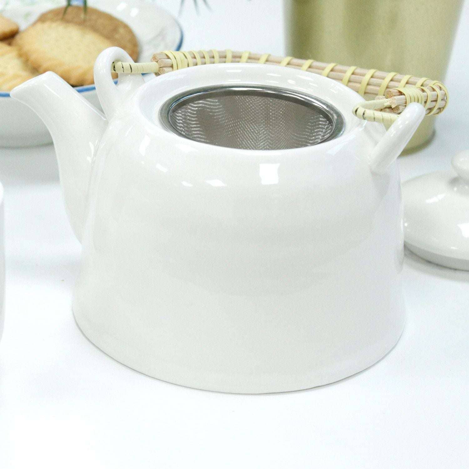 Perfect for afternoon tea gatherings or evening relaxation, this teapot set can also double as a decorative piece. Whether on a rustic wooden table or a modern setting, this classic white design complements all styles. Its simplicity makes it an ideal gift for tea lovers or a lovely addition to your own collection.