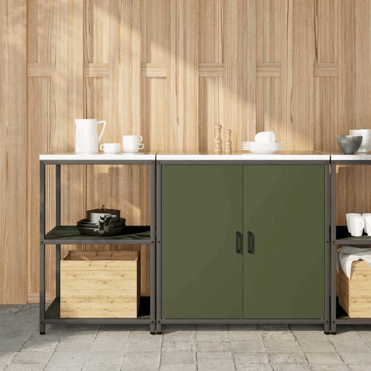This Kitchen Storage Set is not just about style; it's built for practicality. With multiple compartments, it helps to keep your kitchen organized and clutter-free. Use it to hide away kitchen essentials or showcase what you love. Made from high-quality materials, this Kitchen Storage Set is designed to last, ensuring you enjoy its benefits for many seasons to come.