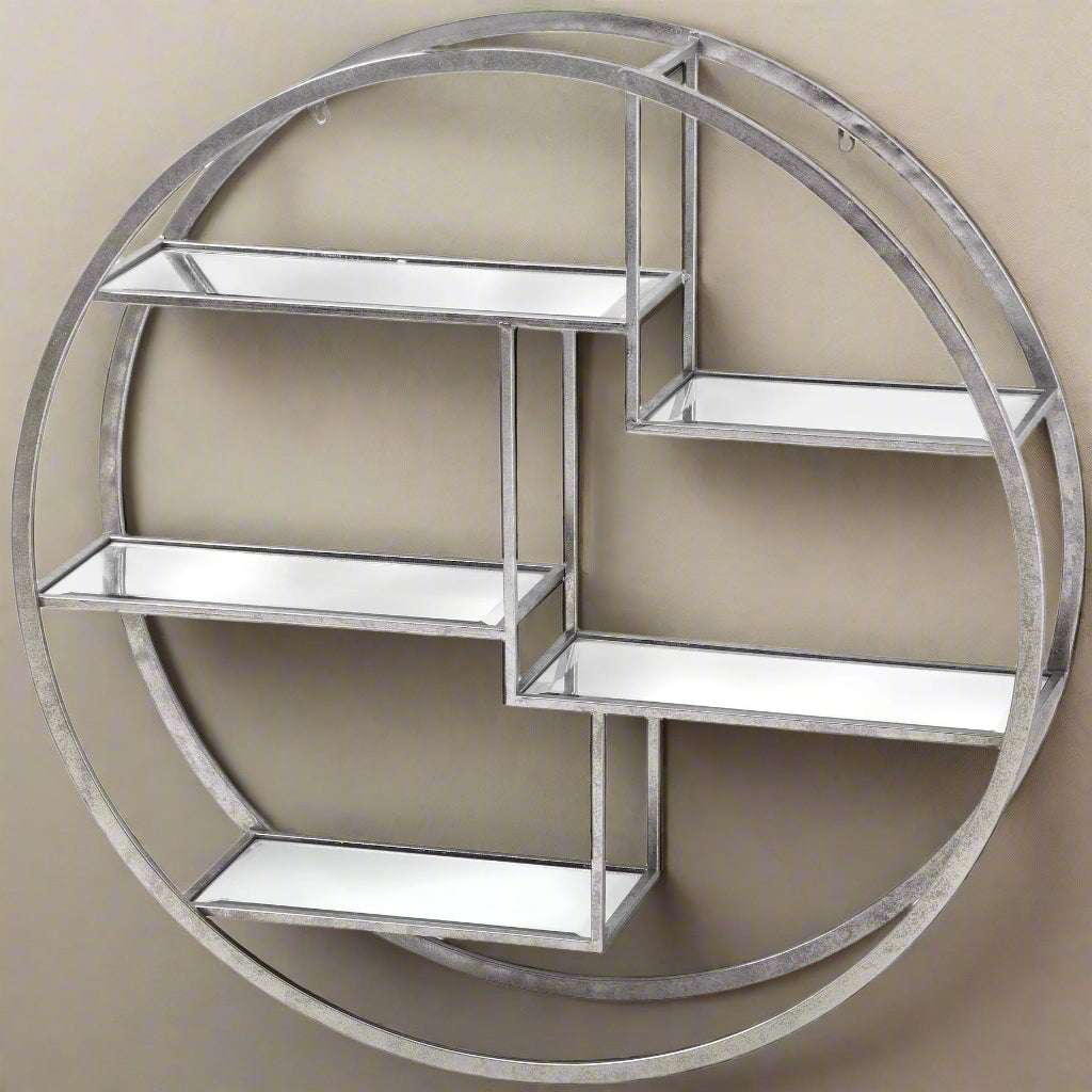 Enhance your space with this Large Circular Silver Wall Hanging Multi Shelf, combining modern style and practical storage. Its sleek silver finish adds a touch of elegance, while multiple shelves offer versatile display options for books, plants, or décor. A striking centerpiece, it maximizes wall space and keeps your essentials organized with sophistication.