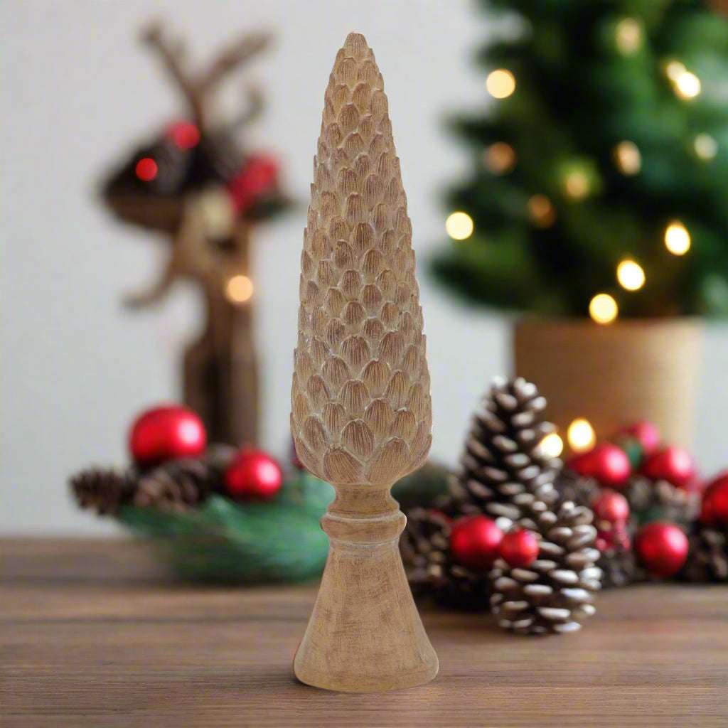 Add natural elegance to your décor with the Shades 4 Seasons Pinecone Sculpture. Crafted from wood, this detailed tabletop piece brings rustic charm and warmth to any room. Perfect as a subtle accent or part of a seasonal display, it enhances your home with timeless, nature-inspired beauty.