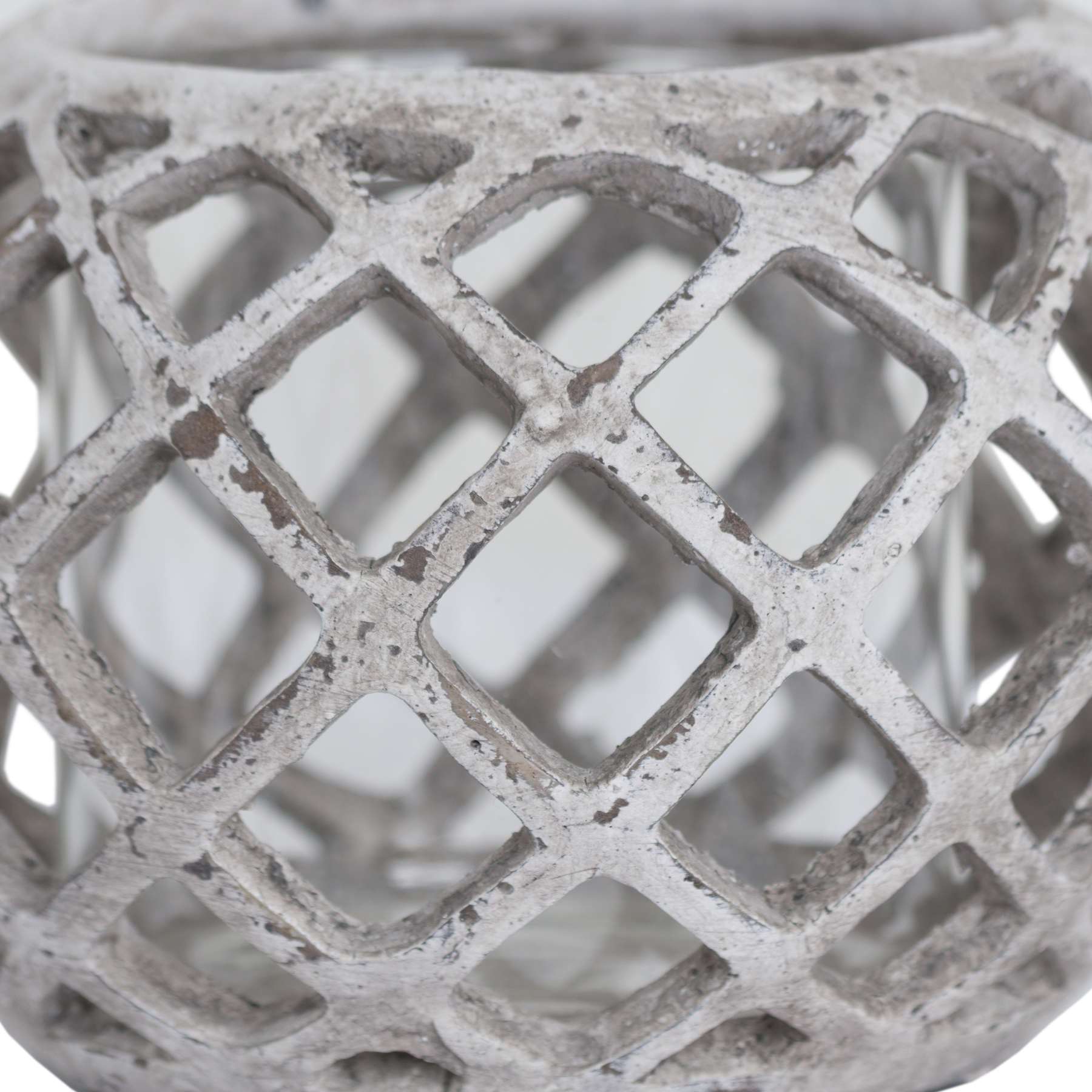 Make a bold statement with the Large Round Ceramic Lattice Hurricane Lantern. Its expansive size and intricate lattice pattern create captivating light and shadow effects, adding depth and warmth to any space. Crafted from durable ceramic, this lantern is ideal for enhancing both indoor and outdoor environments with elegant, ambient lighting.