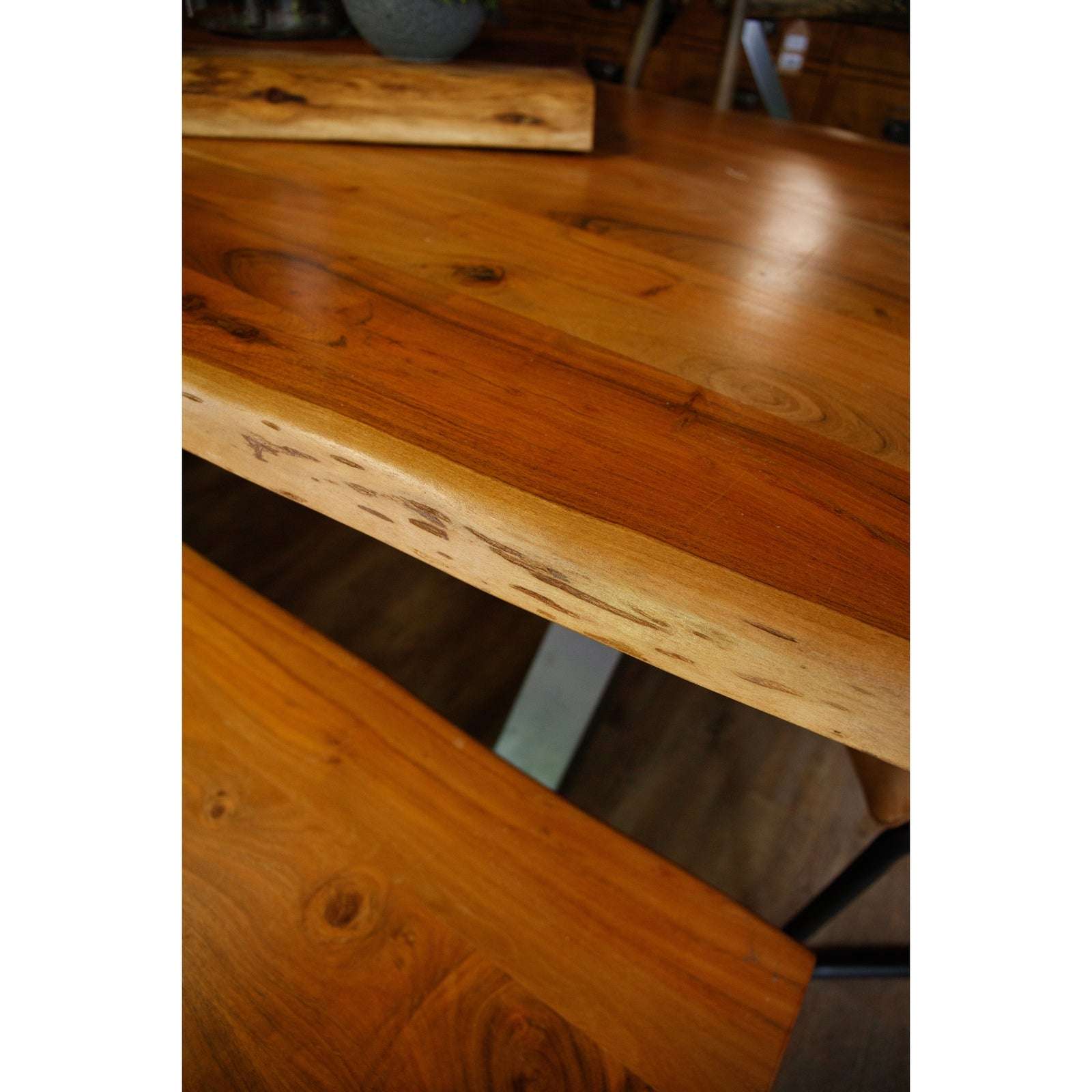 The Live Edge Collection Dining Table is made from Indian acacia wood creating charm and character, this range helps you to bring a feel of the outdoors in by creating a minimal and earthy look. The simplicity of these designs are what makes them so impressive, each piece is complete with a grey metal cross leg design or frame which complements the rustic and natural design of the wood. The live edge feature brings an eye catching design to these pieces and highlights the handmade beauty and authenticity of these products.