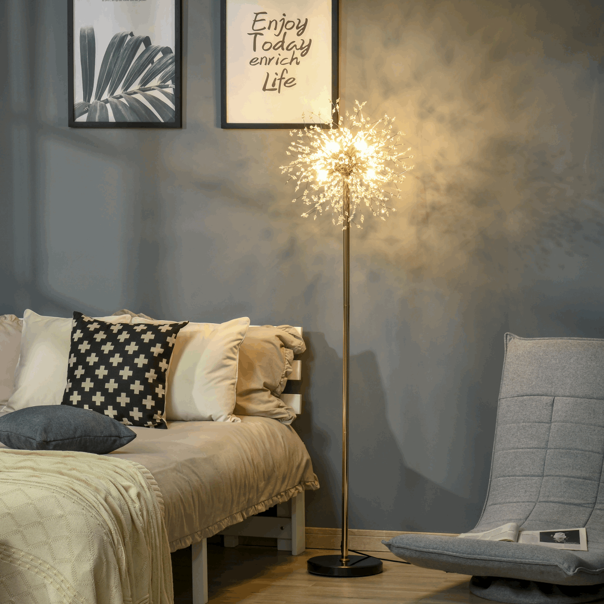 Bring a touch of elegance to your living space with the HOMCOM Modern Floor Lamp. This unique lamp features a dandelion-like lampshade that stands out in any bedroom or lounge. The design offers both sophistication and warmth. The modern floor lamp creates a welcoming glow that fills the room gently.