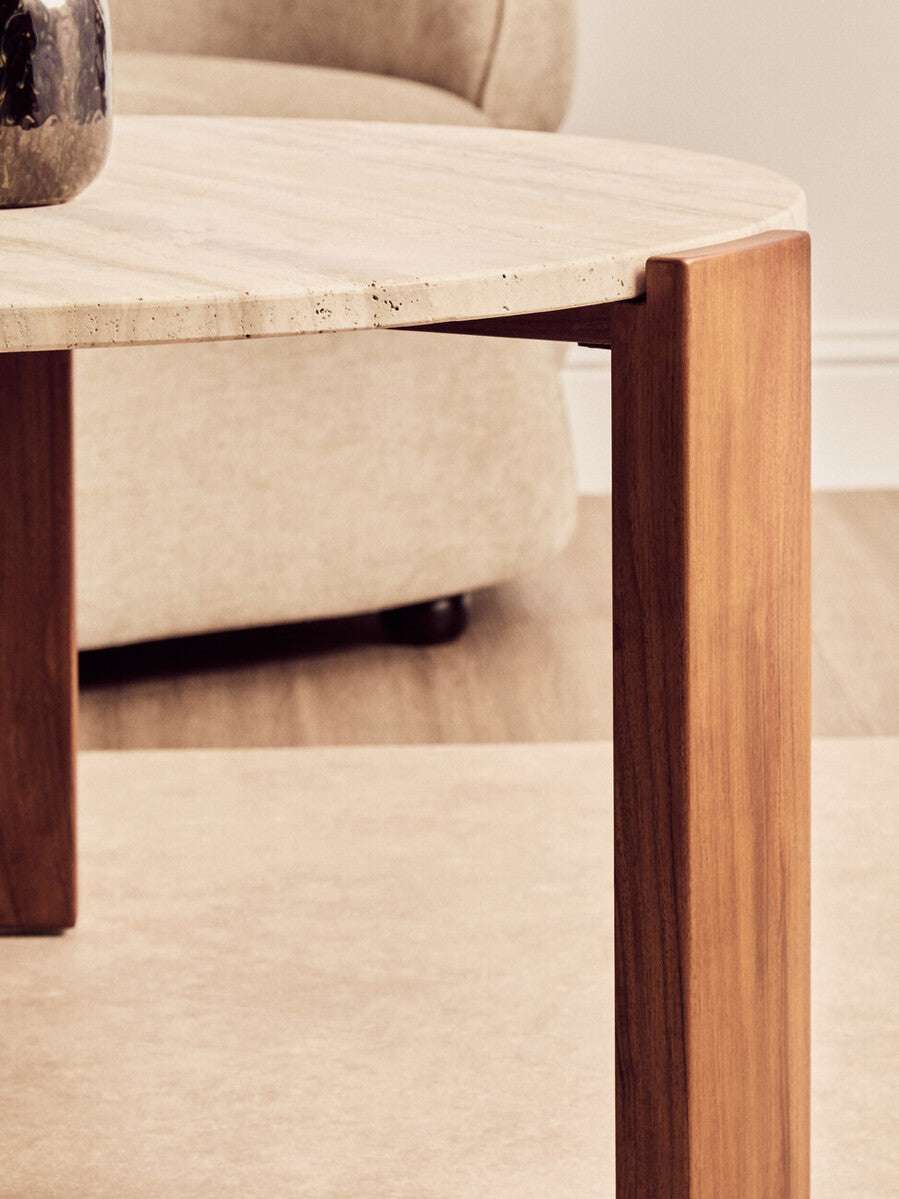 Use a wide tray to protect the surface from drinks and display objects with varying heights for visual interest. If you love natural materials and refined comfort, this table offers the ideal balance of beauty, practicality, and everyday durability.