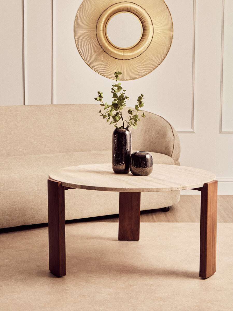 This round large coffee table channels the warmth of Mediterranean design and pairs beautifully with linen upholstery, timber accents, and soft, layered neutrals. The travertine's brown hue grounds a room, adding texture and richness without visual clutter, perfect for calm, curated interiors.