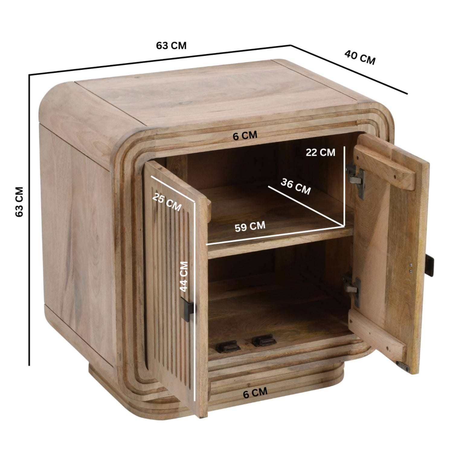Compact Size, Big Impact. Measuring just 63cm W x 40cm D x 63cm H, this mini sideboard is perfect for smaller homes or apartments. But don't let its size fool you - it offers ample storage space with two doors, making it ideal for tucking away anything from tableware and linens to books and games.