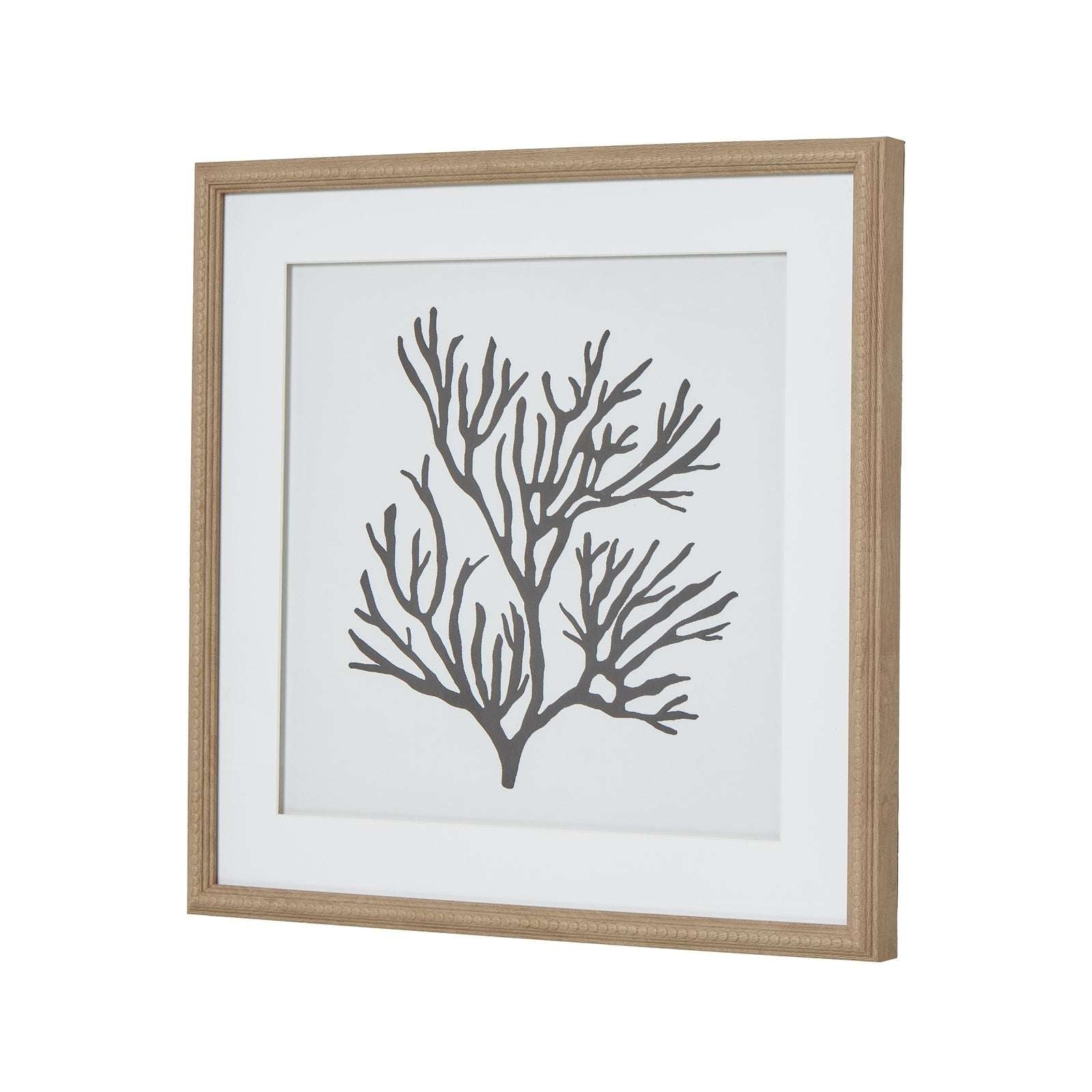 Bring the ocean's delicate beauty into your collection with this striking coral silhouette artwork, masterfully presented in a sophisticated beaded frame. The bold black botanical design against crisp white creates a dramatic coastal statement that resonates with both modern and traditional interiors. This versatile piece appeals to the design-conscious seeking refined coastal décor without overwhelming beachy themes. The natural wood-toned frame with its subtle beaded detail adds texture while keeping the focus on the intricate coral design. This artwork pairs beautifully with neutral furnishings, natural textures, and metallic accents. Style alongside rattan furniture, textured throws, or metallic vessels for a curated coastal-luxe look. The sophisticated balance of organic form and geometric framing makes this piece equally at home in contemporary apartments, Hampton-style houses, or elegant beach homes.