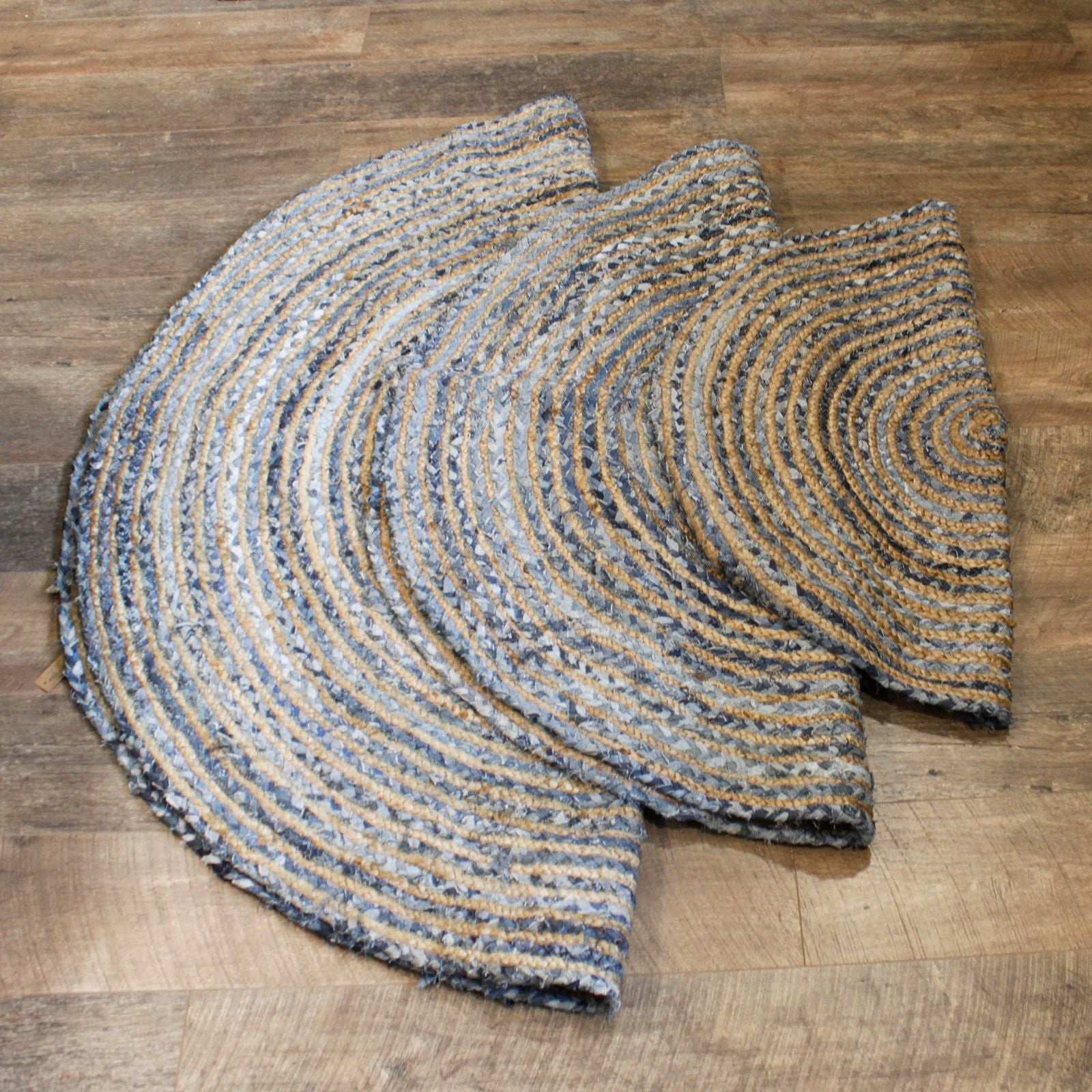 Transform your living space with the beautiful Denim Rug from Shades 4 Seasons. Measuring 150 cm in diameter, this round rug combines the rustic charm of jute with the innovative use of recycled cotton. Its unique texture and stunning blend of colors make it a perfect fit for any room.