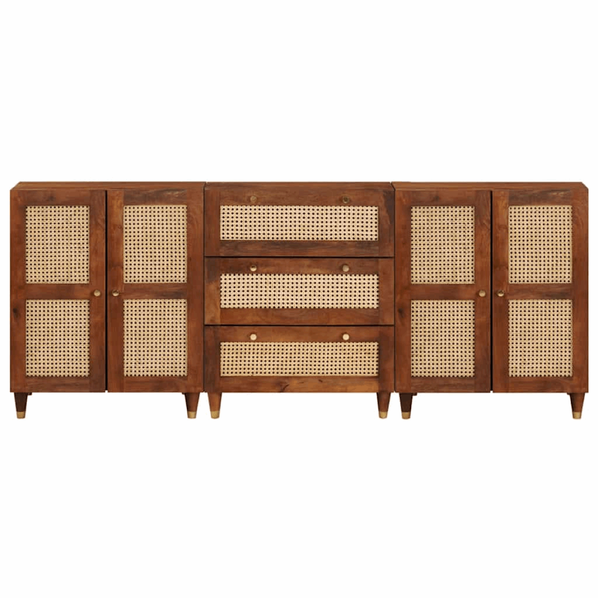 Solid Mango Wood: This sideboard is made from solid mango wood, well-known for its strength and lovely texture. It's built to last and adds a lush look to your room. The natural grain and texture give it a beautiful finish that’s both eye-catching and durable. This material ensures your sideboard stays sturdy and stylish for years.