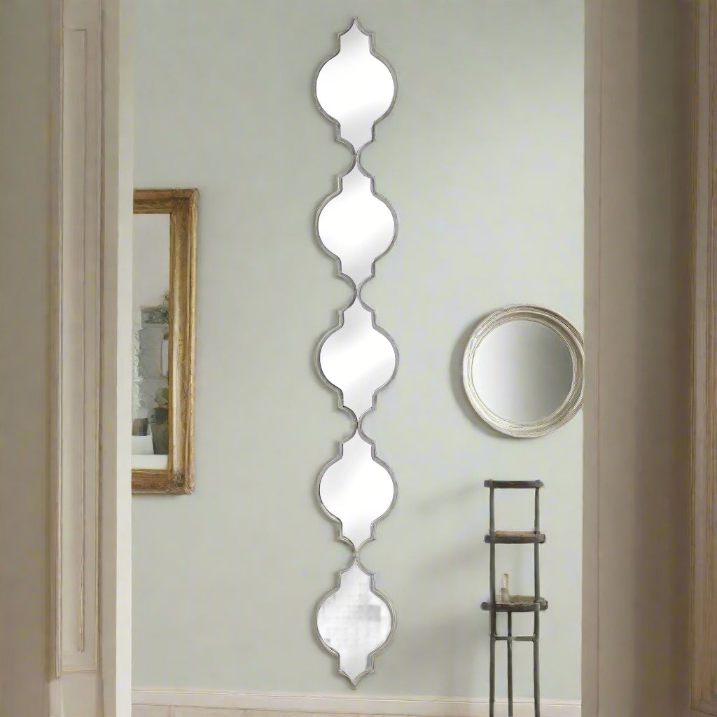 This is the Silver Quarterfoil Mirror, a simple and timeless mirror that will provide a stylish update to any home. The quarterfoil shape brings a stylish and vintage feel while the silver complements this piece to give a timeless finish. At 132cm high and 16cm wide this is a practical size that will fit into many wall spaces as an eye-catching feature.