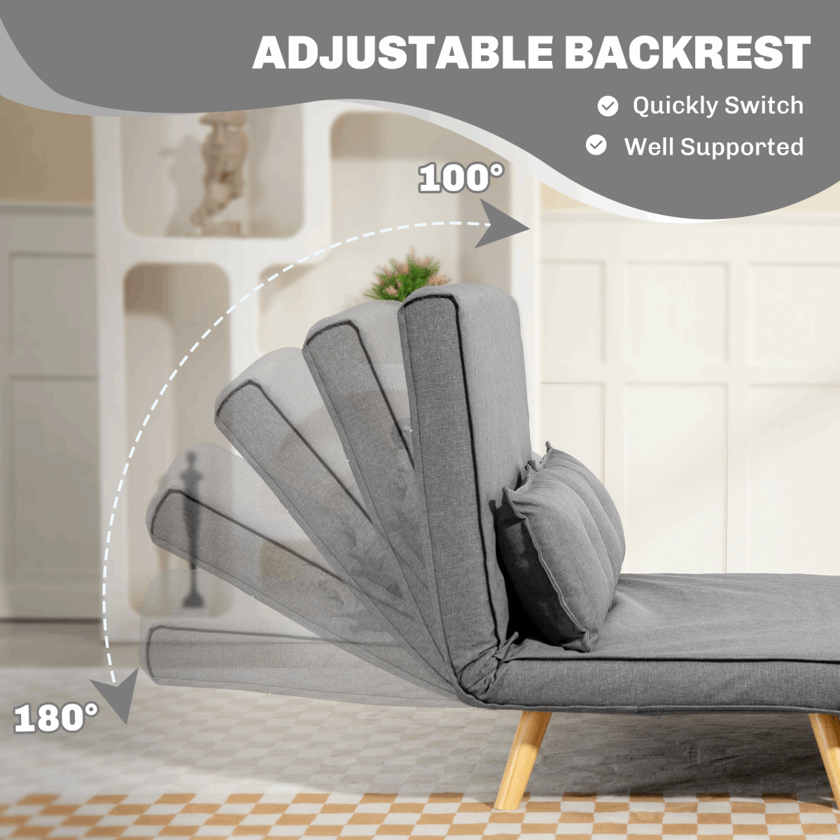 - Click-clack mechanism converts sofa into a chaise lounge or a bed super easily