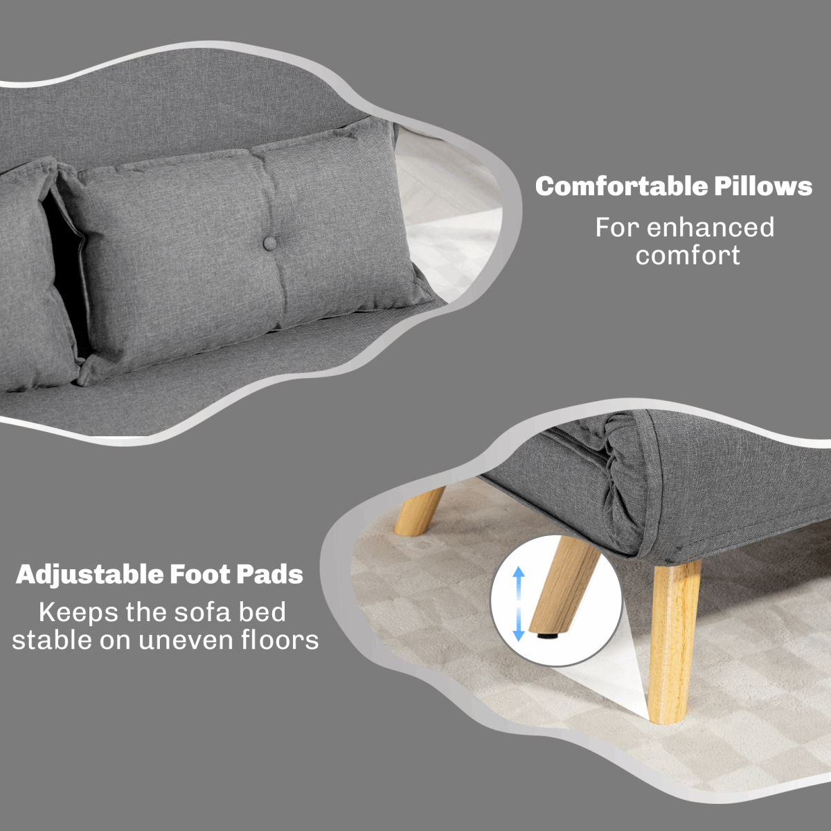 - Metal frame for a strong core, with wooden legs for support as you sit and sleep