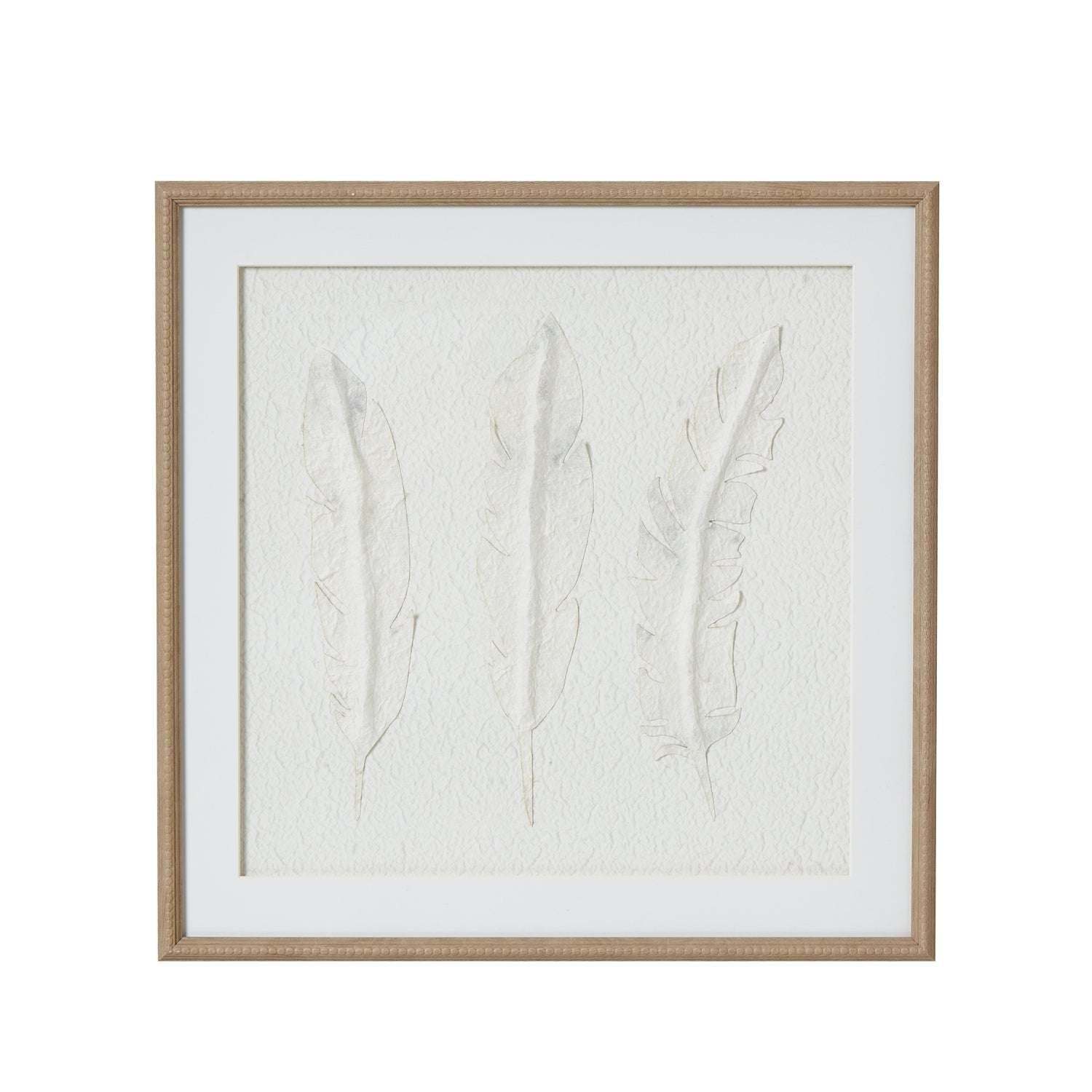 The Solli White Feathers artwork brings sophisticated minimalism to any space with its delicate feather impressions set against a pristine white background. The textural, raised design creates subtle shadows and depth, while the champagne-toned beaded frame adds a touch of refined glamour. This versatile piece resonates perfectly with contemporary, Scandinavian, and coastal interior styles. Ideal for creating serene focal points in bedrooms, living spaces, or spa-like bathrooms, this artwork pairs beautifully with natural textures like linen, jute, and weathered wood. The neutral palette allows for endless styling possibilities - complement with metallic accents, organic ceramics, or layer with other monochromatic pieces for a gallery wall effect.