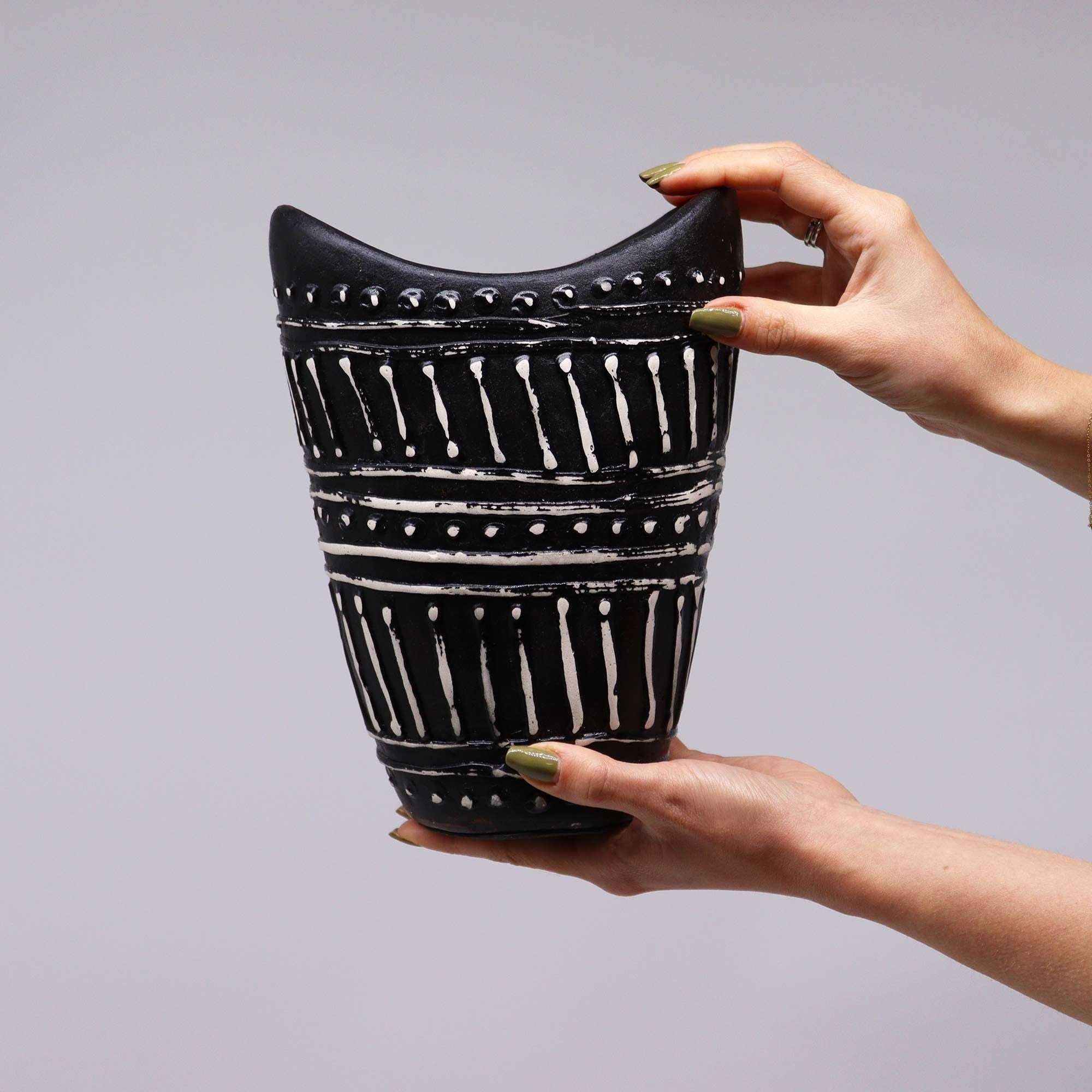 Swirls Shaped Vase in Chocolate from Lombok - a fusion of artistry and culture. Handcrafted on the Indonesian island of Lombok, these ceramic vases showcase terracotta's rustic charm, shaped into various unique forms.