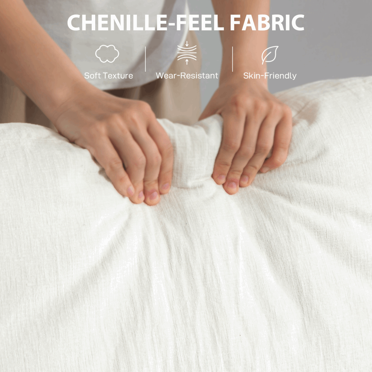 ● Chenille-feel fabric upholstery offers a luxurious touch