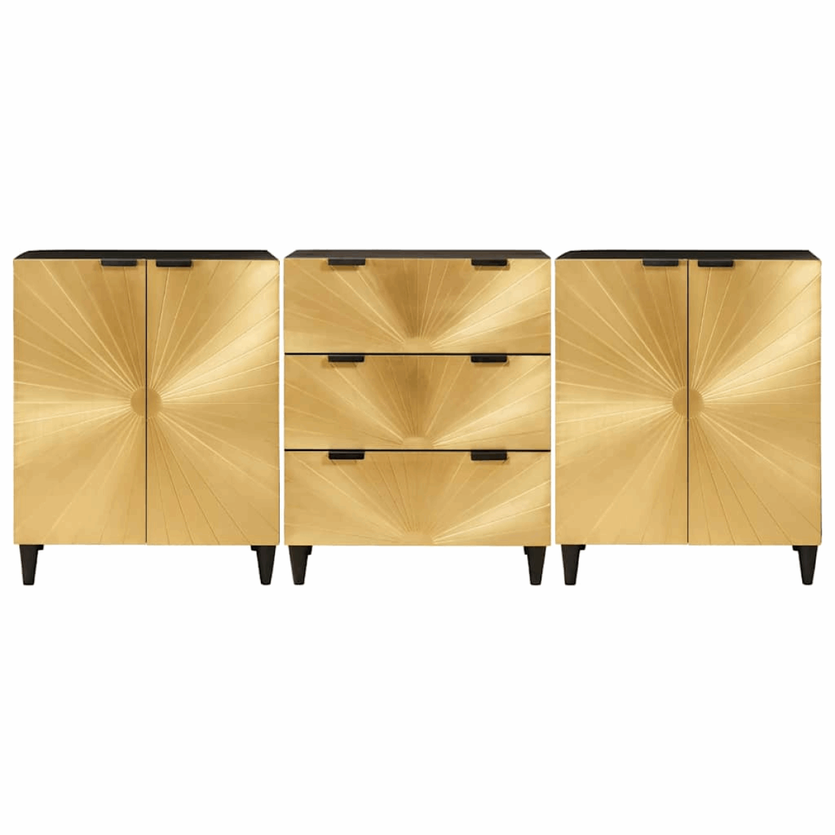 This Solid Wood Sideboard is a stylish combo of design and practicality, making it just right for modern living spaces. With a sleek black and gold finish, it brings together elegance and functionality, giving you loads of storage for your dining or living essentials.