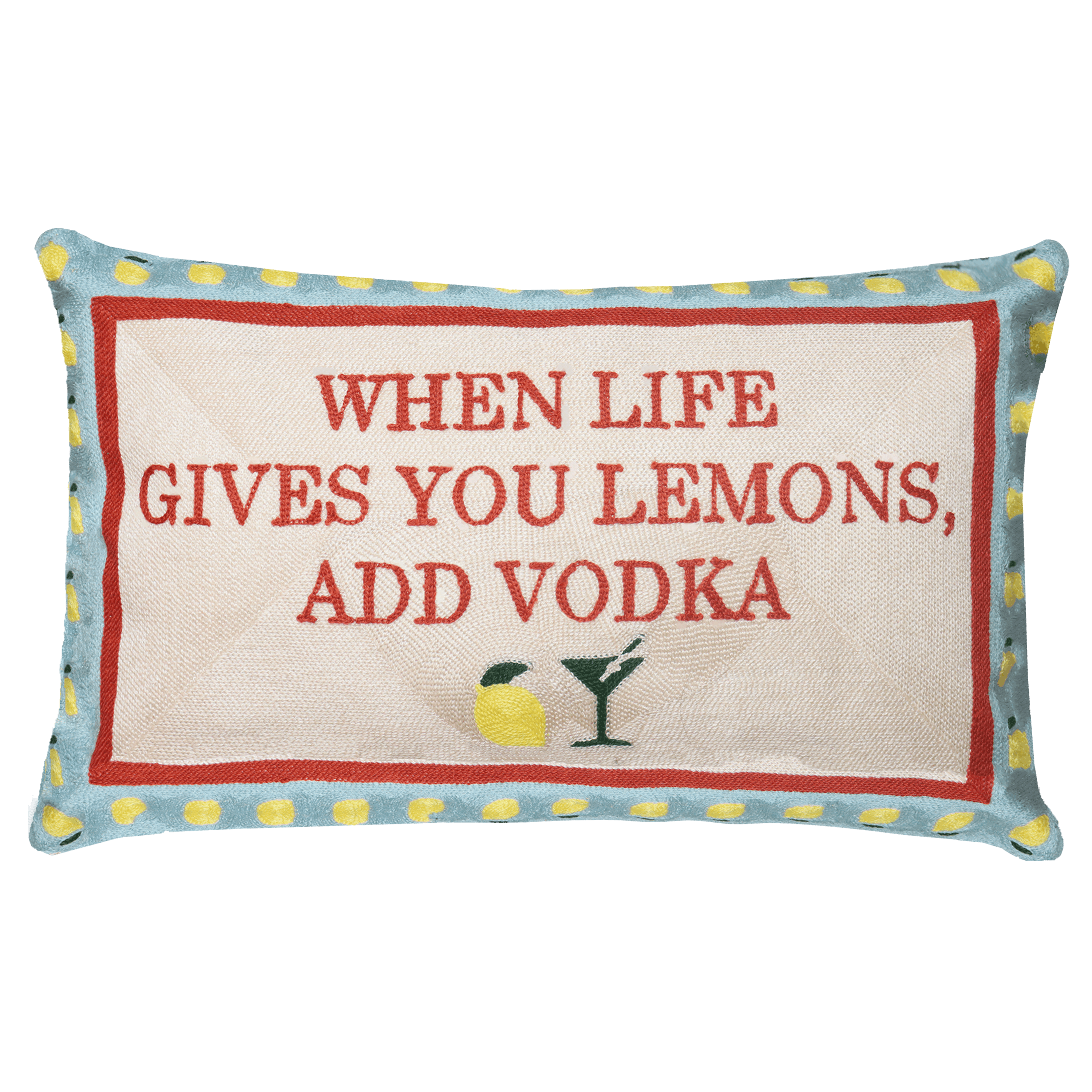 When life gives you lemons, add vodka (or tequila). When you’ve had a long hard day, this lemon Needlepoint Cushion featuring "When Life Gives You Lemons, Add Vodka" will inspire you to make some good decisions.