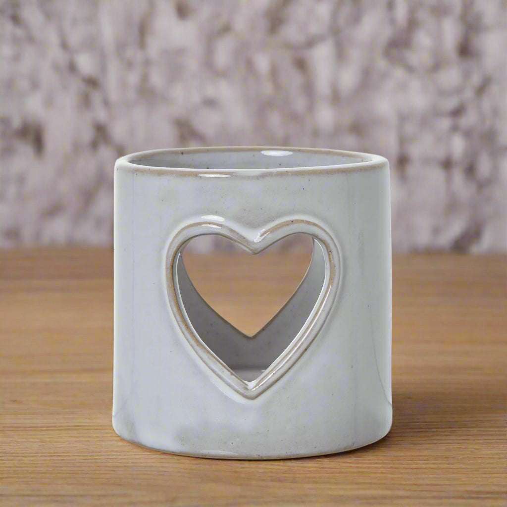 This White Ceramic Heart Cut-Out Tealight Holder from Shades 4 Seasons brings style and warmth to any space. Its smooth white finish looks clean and bright in every setting. The simple heart-shaped cut-out offers a gentle glow when the tealight is lit. This design fits all types of rooms and seasons.